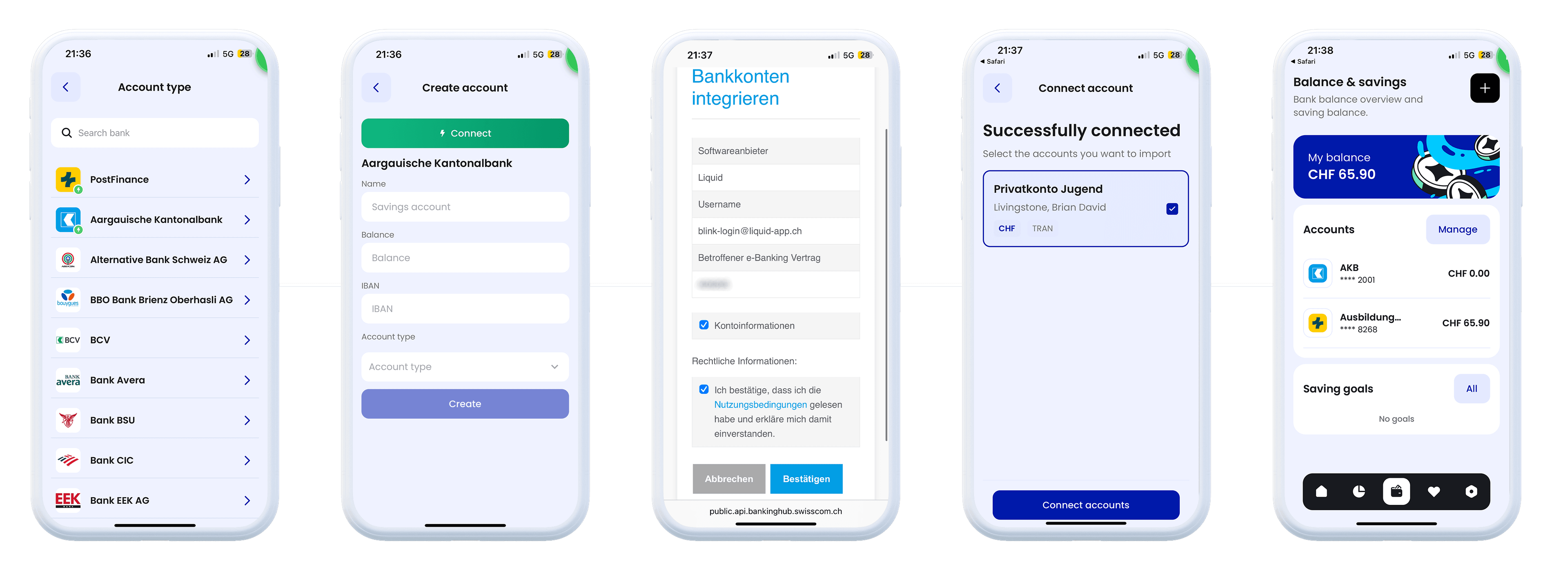 This is precisely where the Liquid app dials in: Through the bLink interface from SIX, all bank accounts are automatically consolidated in the app. This way, users receive a central, up-to-date, and clear overview of their finances. This is complemented by gamification elements such as streaks, challenges, and the wish list, which make financial management a motivating, daily habit instead of a tedious duty.